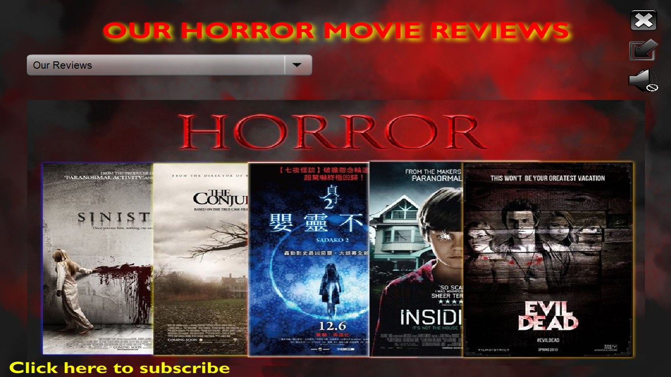 Select a Movie : User memilih film sesuai dengan kemauan sehingga dapat melihat trailer dan detailnya. Terdapat “Our Review” dalam pilihan tersebut yang berarti itu adalah video kompilasi dari 5 film horror yang kami sediakan dan dibuat dalam bentuk review singkat.