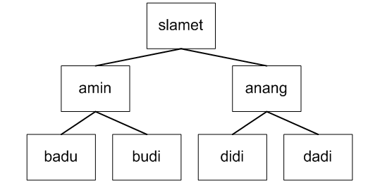 dimana ayah adalah nama predikat, sedangkan slamet dan amin adalah menujukkan argumen.